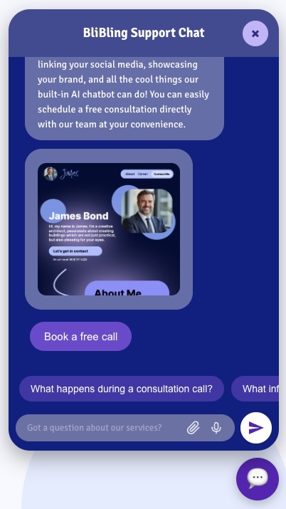 Hello! 👋 I'm your friendly BliBling Agency assistant. Whether it's a stunning website, powerful AI automation, branding magic, or growing your online presence — I'm here to help. What can I do for you today?